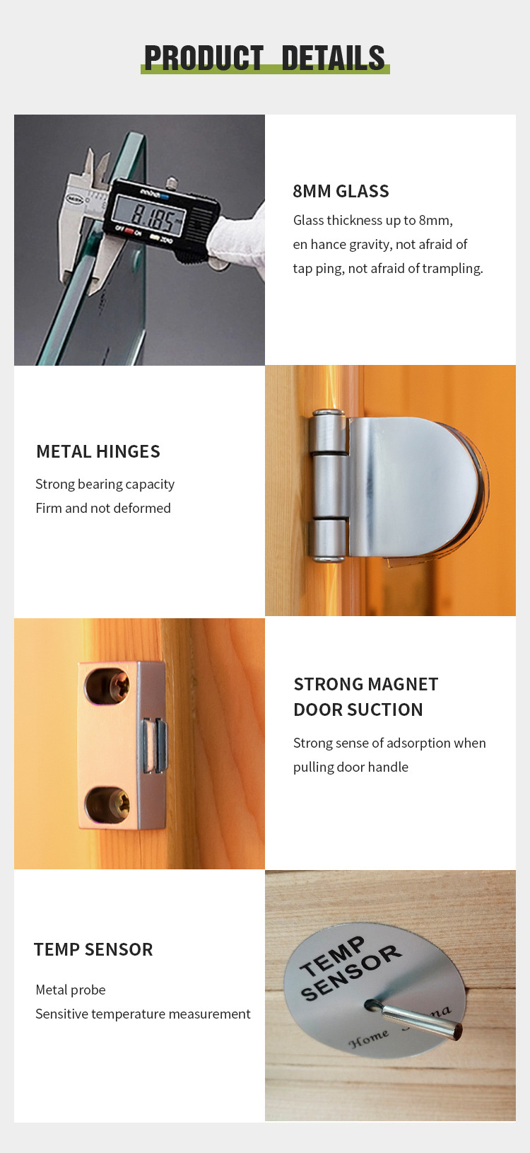 8ММ каљено стакло: Као што је приказано у детаљима о производу, дрвена инфрацрвена и парна сауна соба за 1-3 особе има каљено стакло дебљине 8 мм. Одликује се изузетном издржљивошћу, повећавајући отпорност на гравитацију. Не морате да бринете о тапкању или гажењу – направљен је да издржи свакодневну употребу.