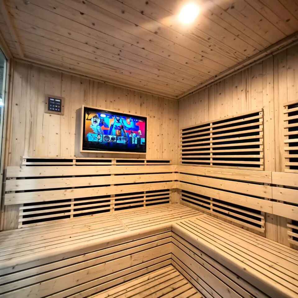 - Технолошка интеграција: Далеко инфрацрвено грејање и ЛЦД ТВ комбинују здравствене предности са забавом.