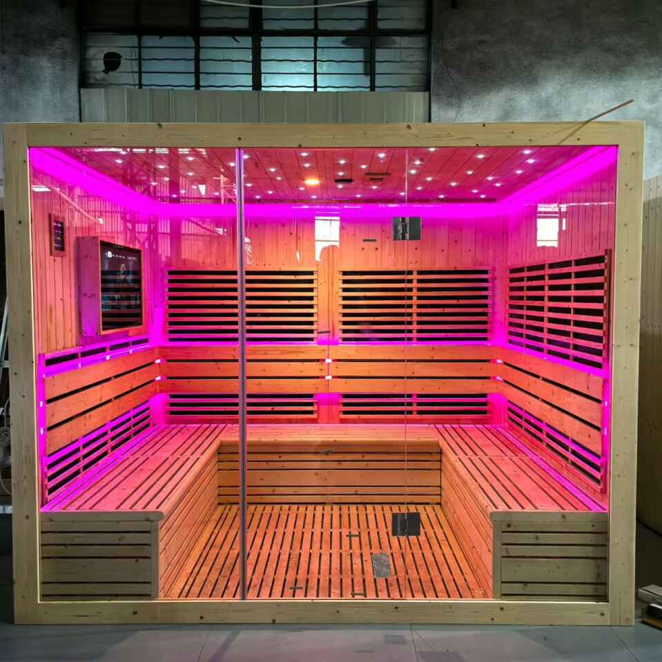 Тражите пространо и луксузно решење за сауну за групно опуштање, дружење или комерцијалну употребу? Наша сауна за сауну од 5-10 особа са далеком инфрацрвеном сауном са ЛЦД ТВ-ом је прилагођена вашим потребама, интегришући врхунске материјале, напредну технологију и дизајн усмерен на човека.