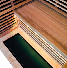 Изванредна карактеристика сауне је систем двоструког грејања. Далеки инфрацрвени грејни елементи омогућавају дубоко продирање, загревајући тело изнутра ка споља како би подстакли циркулацију крви и детоксикацију. Помоћни систем грејања обезбеђује брз пораст температуре, омогућавајући сауни да достигне жељену температуру за кратко време. Ова комбинација не само да побољшава ефикасност грејања, већ и одржава уједначену дистрибуцију температуре, елиминишући хладне тачке.