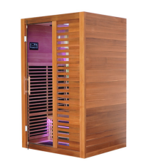 Ова далеко инфрацрвена сауна са двоструким грејањем, направљена од канадске хемлоке класе А, идеалан је избор за кућни веллнесс. Долази са уграђеним љубичастим светлом и опционим РГБ светлима која мењају боју, комбинујући ефикасне перформансе грејања са удобним визуелним амбијентом. Издржљива конструкција Цанадиан Хемлоцк осигурава стабилан рад и дуг радни век, чинећи га савршеним за свакодневно опуштање и детоксикацију.
