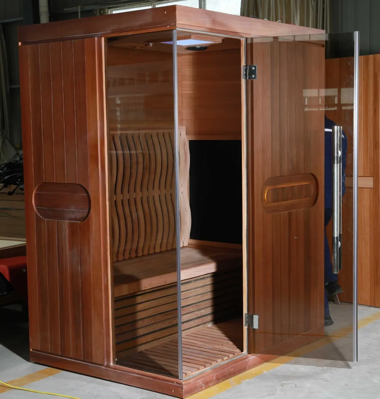 Ова инфрацрвена сауна за 2 особе комбинује модеран дизајн са терапеутском функционалношћу, идеална за кућну употребу у веллнессу. Израђена од висококвалитетне кукуте или канадског црвеног кедра – дрвета цењеног због своје издржљивости и природне ароме – пружа врхунско искуство сауне кроз напредну технологију далеког инфрацрвеног грејања.