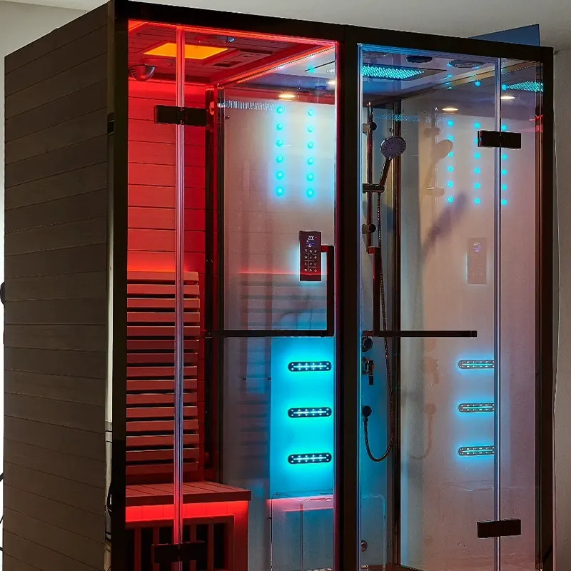 Опремљен са инфрацрвеним панелима за грејање од угљеничних кристала, у комбинацији са функцијом туширања мокром паром.