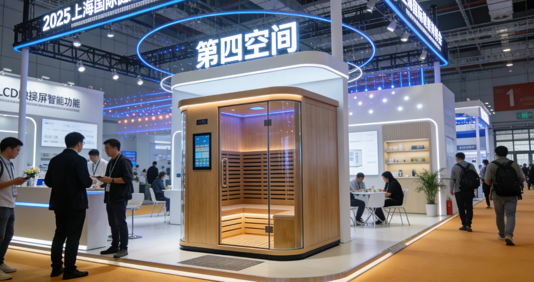 На недавно завршеном сајму здравствене индустрије у Шангају 2025., концепт „Четврти простор“сауна собакоје су излагале компаније као што је Ксузхоу Кангзхииуан је привукла пажњу. Производ је опремљен ЛЦД екраном осетљивим на додир, интерфејсом за емитовање уживо Тикток и функцијом подешавања температуре гласа, која подржава кориснички дефинисану температурну криву и систем мириса (као што је отпуштање есенцијалног уља лимунске траве на 60 ℃, мењање мириса кедра на 80 ℃), а може чак и да повеже интелигентни тоалет за праћење састава зноја.