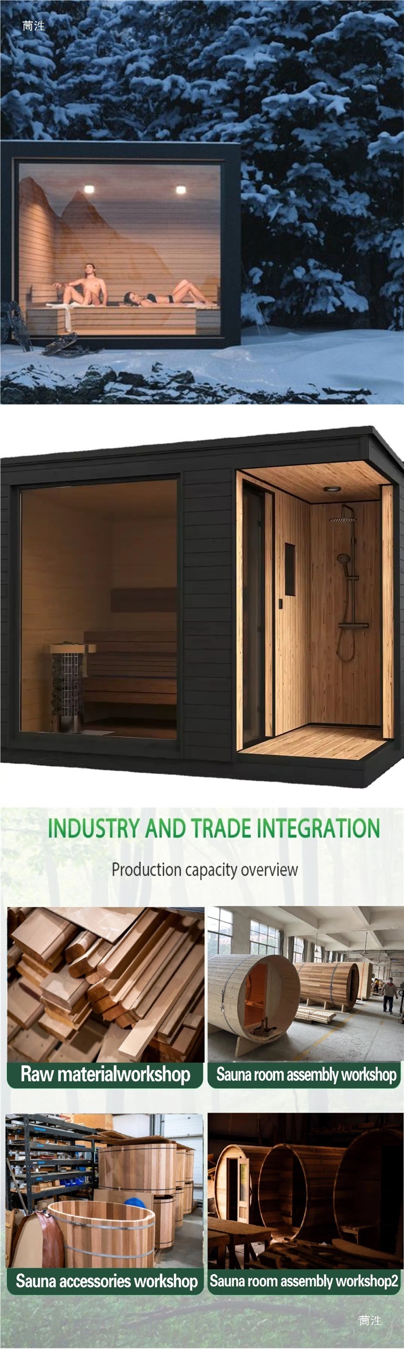- Производни процес: Стандардизована производња обухвата "прераду сировина - монтажу основних компоненти - инспекцију готовог производа". Детаљи као што су перформансе грејања пећи за сауну, хидроизолација система за туширање и антикорозивни премаз спољашњег омотача подлежу вишеструким тестовима како би се осигурала стабилна и поуздана употреба на отвореном.